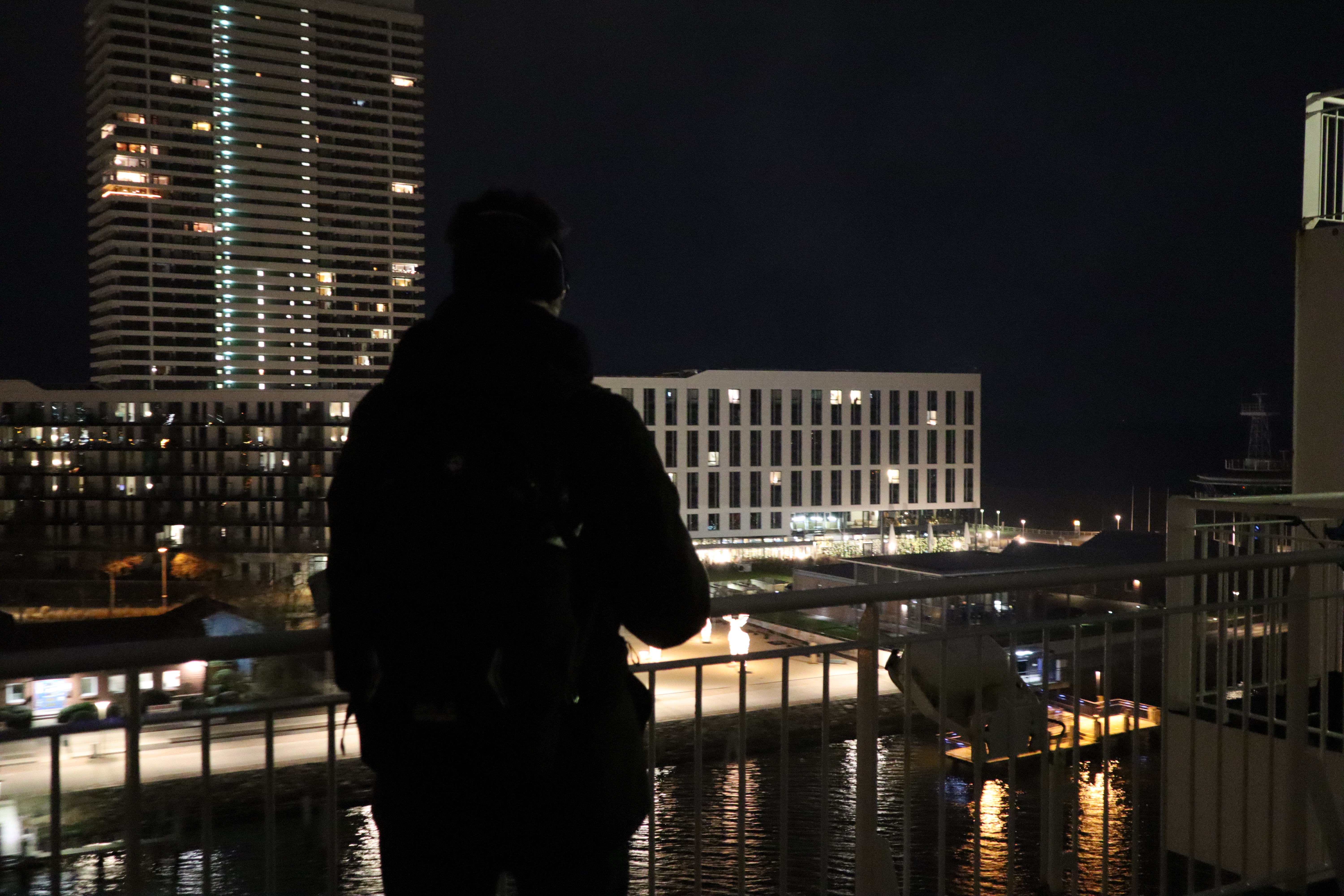 Möwengeschrei am hell erleuchteten Skandinavienkai in Travemünde. Endlich geht es los!