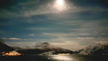 Abends müssen wir zügig ins Bett, denn die Nacht wird noch kürzer werden als die letzte. Wieder steht Whale-Watching auf dem Programm. Hoffentlich klappt es diesmal, denn das Wetter scheint ziemlich gruselig zu werden. Die Orcas werden nur bis Ende Januar vor Ort sein und diese Tour im RIP-Boat ist die allerletzte dieser Art in diesem Winter.