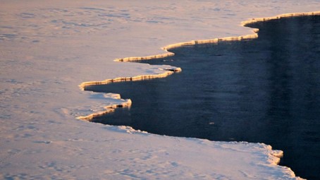 An der letzten Kurve vor Tulleng halten wir nochmals an. Die Sonne taucht gerade Eiskante und Fjord in ein magisches Licht und die Wasseroberfläche dampft.